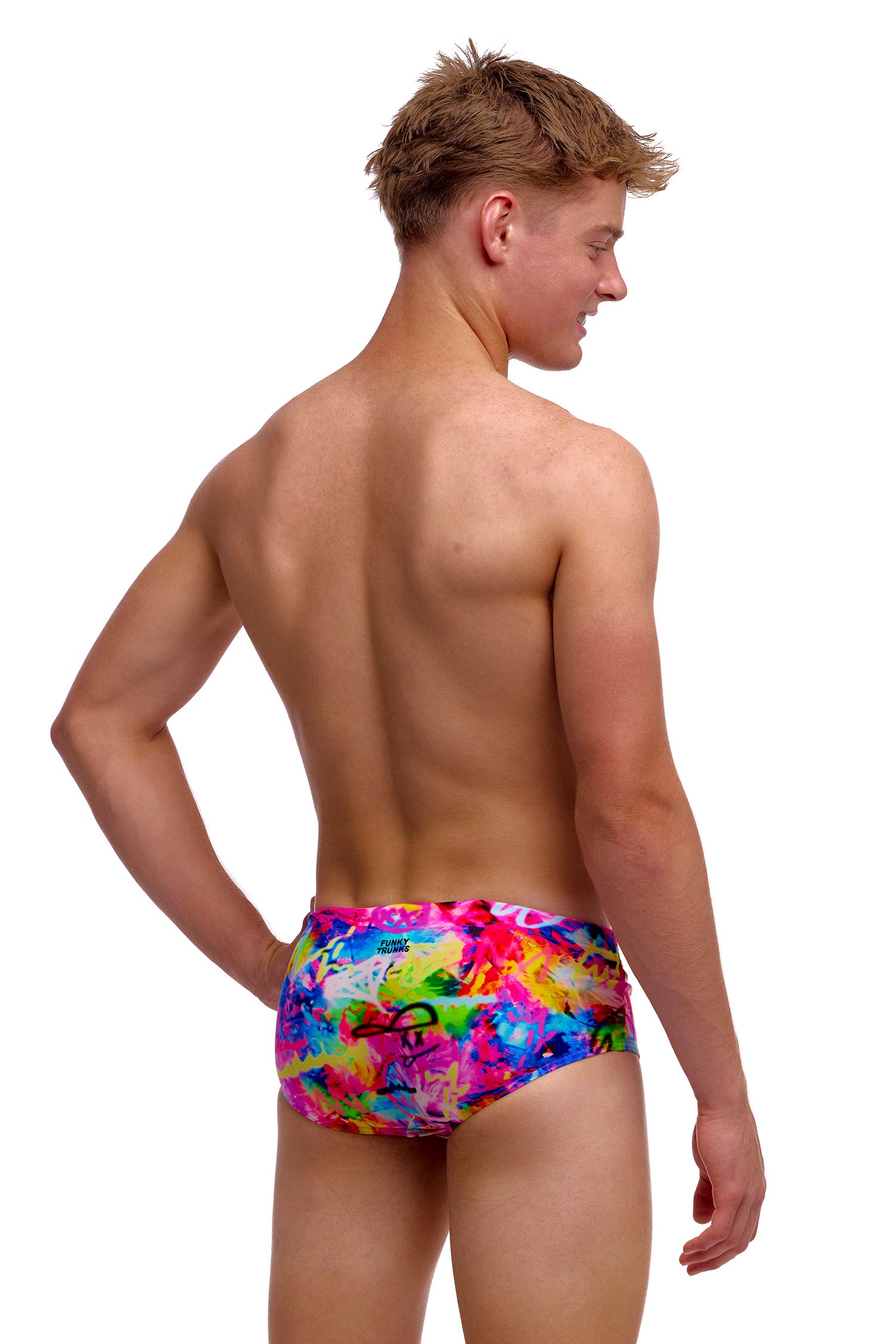 Funky Trunks Tag Her Boys’ Sidewinder Trunks offer a slim, athletic cut with 14cm sides and a fully lined front panel for comfort and support. Designed for young swimmers who prefer a modern, streamlined silhouette, these trunks feature a secure drawcord waist and wide elastic leg openings to stay comfortably in place. Finished with a rubber-print Funky Trunks logo, they are built for durability, performance, and standout style in every training session or race. The Boys Sidewinder Trunk has replaced the Boys Classic Trunk. The styling is almost identical and sizes now align with the Boys Training Jammer. If you require a size 30 (boy's age 14 equivalent) it is now available in the men's range.